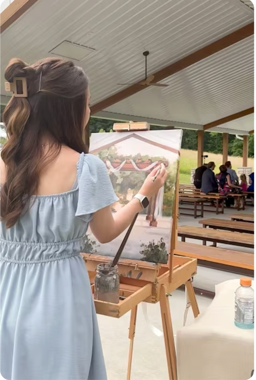 A special way that I use my art is through live weddings paintings! I attend weddings to paint a memorable keepsake for the Bride & Groom. My goal with these paintings is to create a beautiful image to hang in the couple's home that reminds them of every day of their special day!