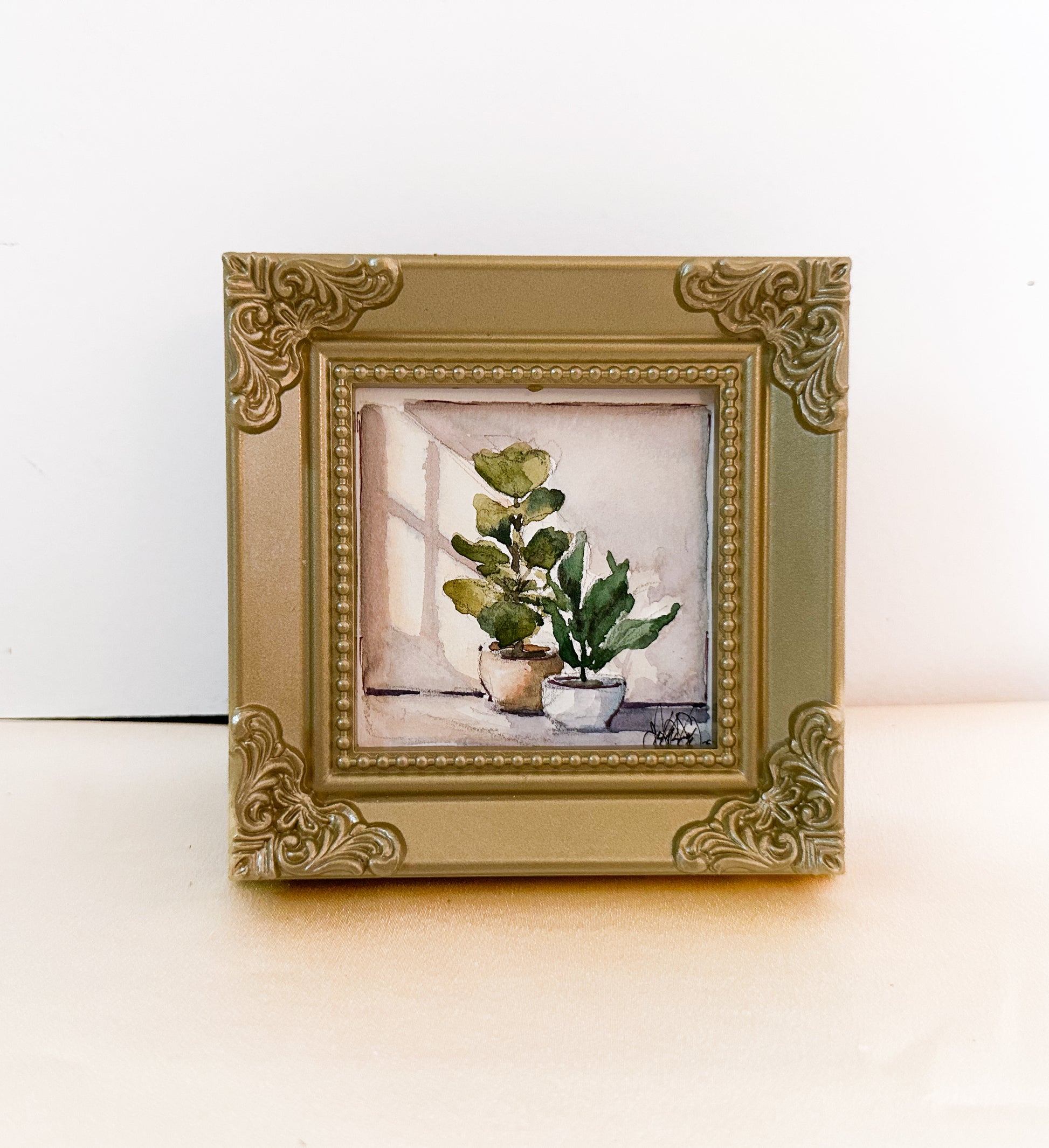 3x3 inch framed original watercolor painting. Perfect for table decoration.