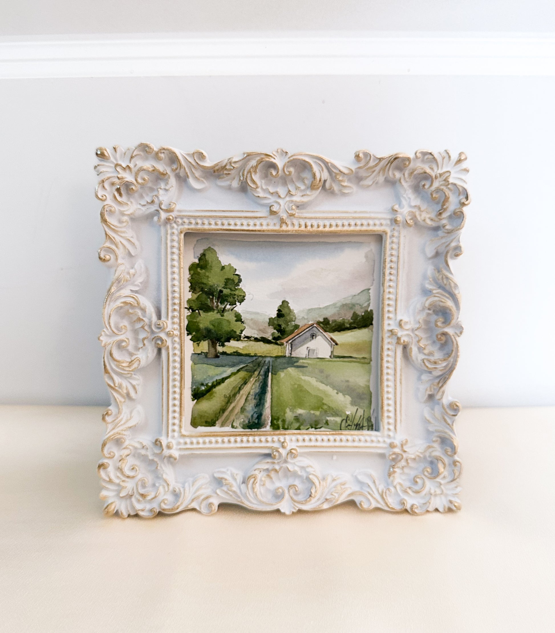 4x4 inch framed original watercolor painting. Perfect for wall gallery or table decoration.