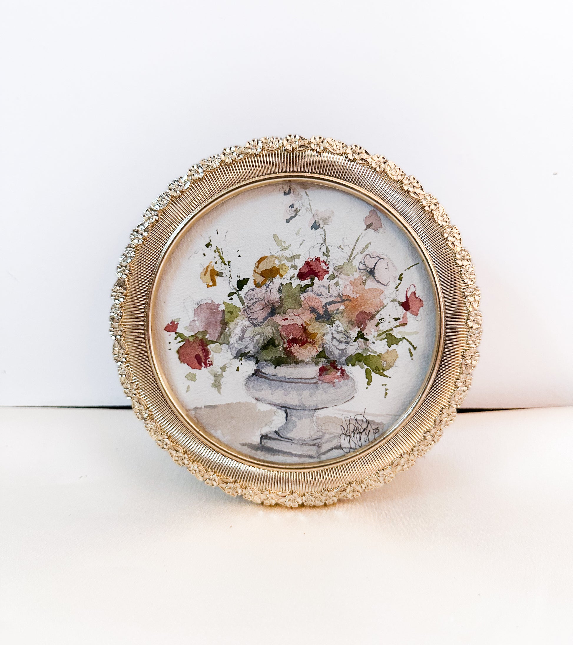 4x4 inch framed original watercolor painting. Perfect for table decoration.
