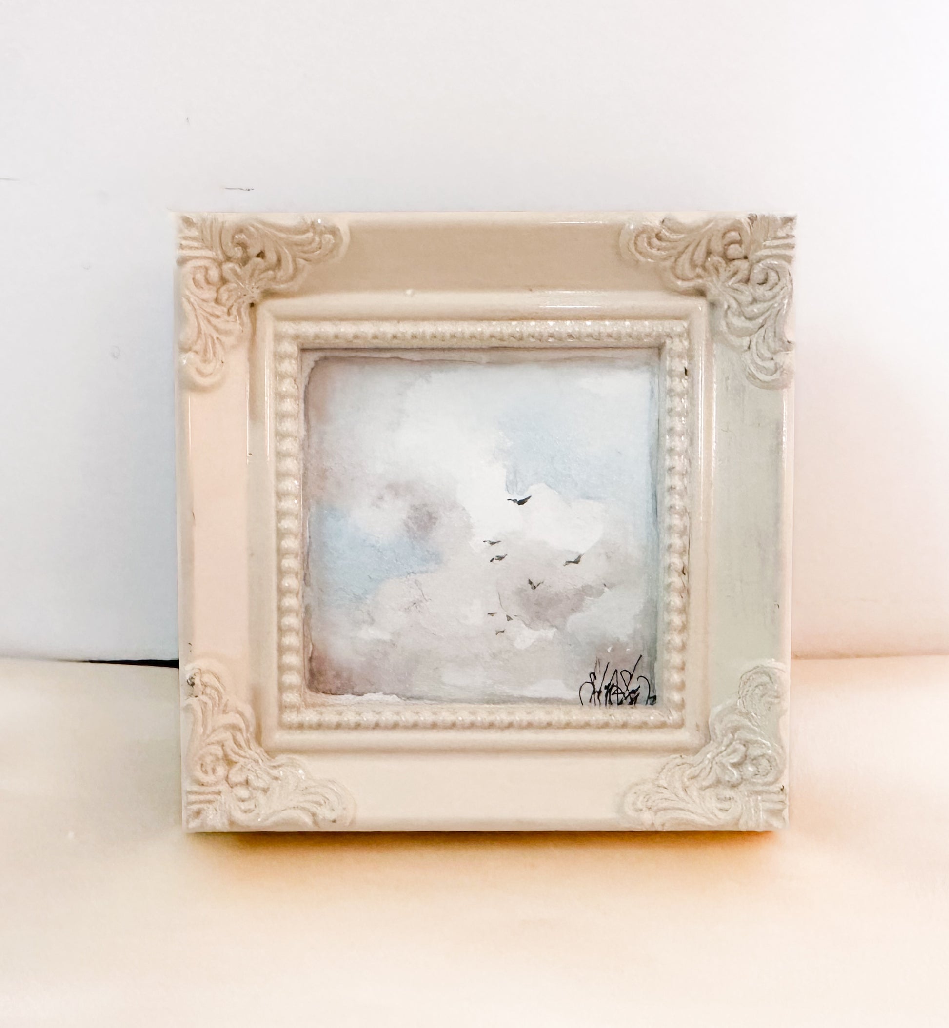 3x3 inch framed original watercolor painting. Perfect for table decoration.