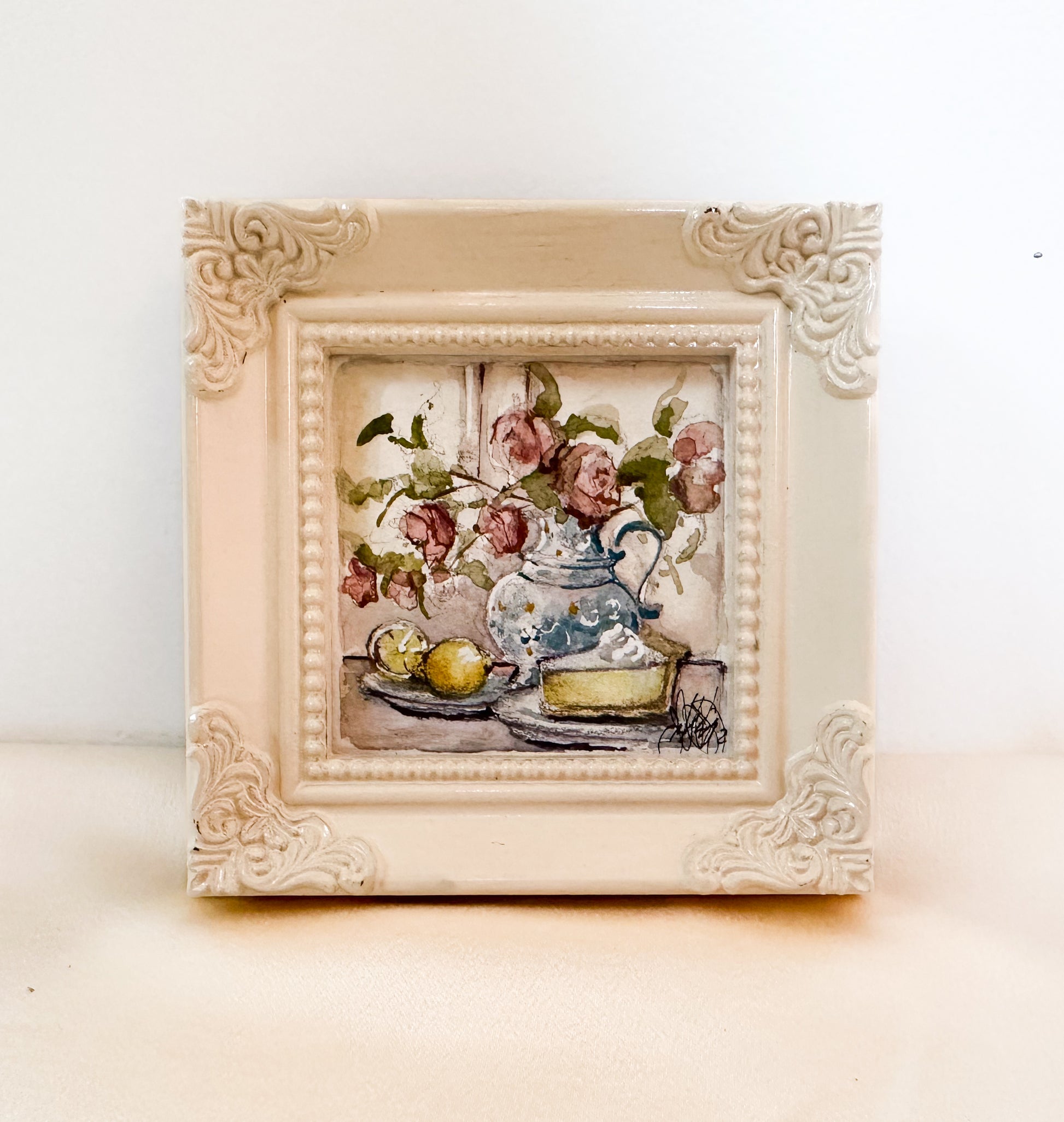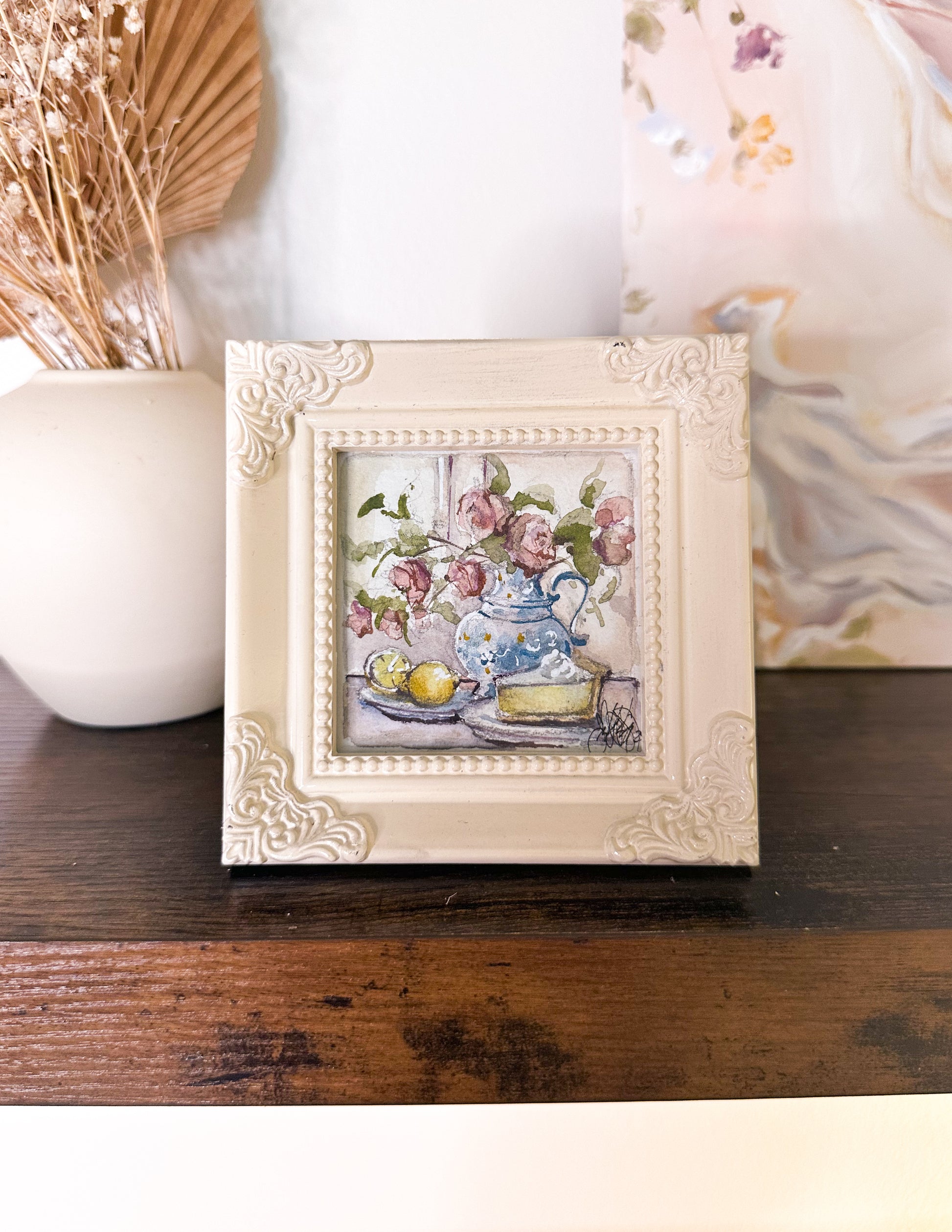3x3 inch framed original watercolor painting. Perfect for table decoration.